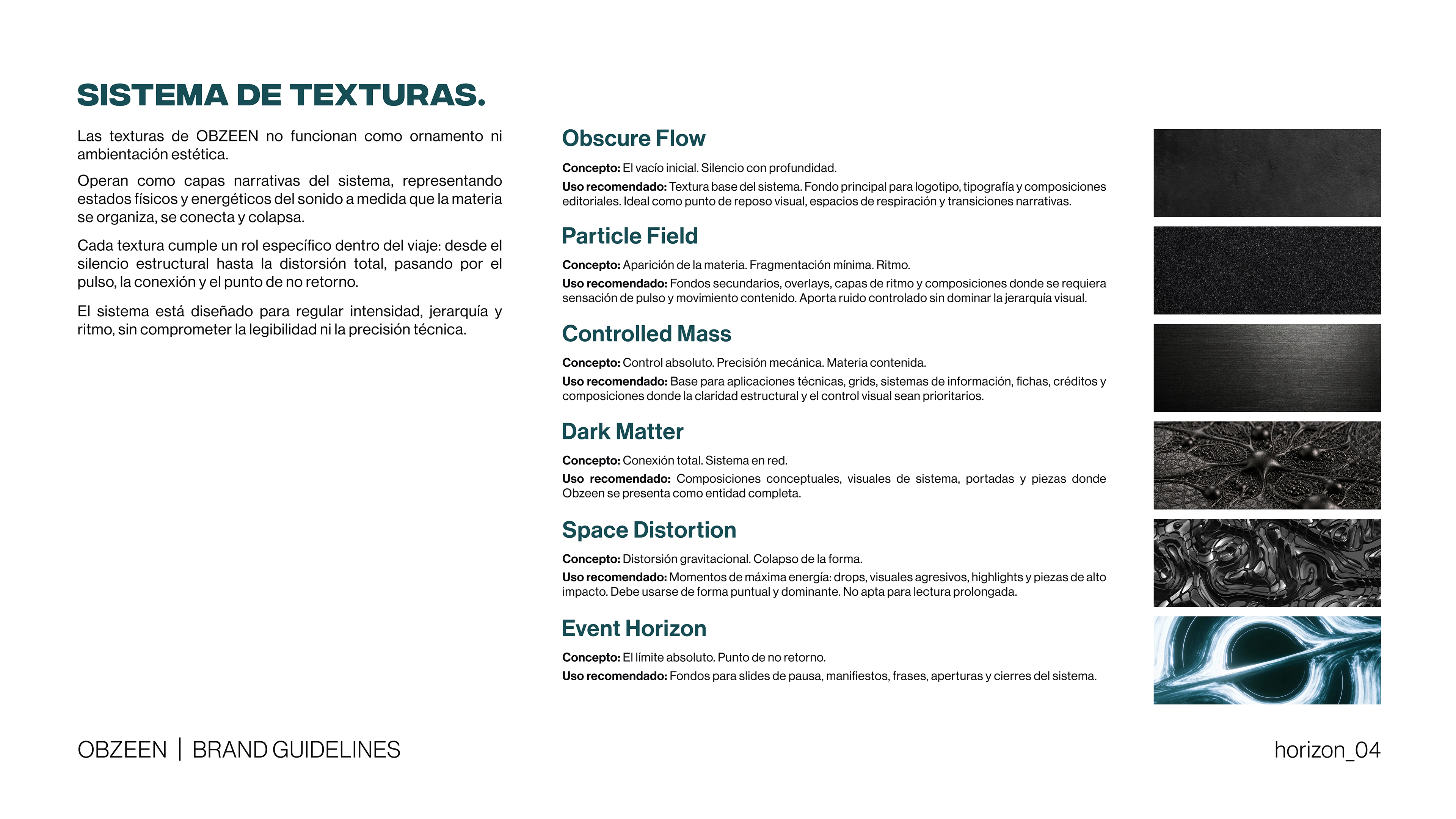 A visual universe born from singularity. This rebrand constructs Obzeen as a gravitational entity where sound, structure, and distortion coexist in controlled tension. Through identity design, presskit narrative, and styling direction, the project builds a cohesive ecosystem in which energy collapses, reforms, and endures.